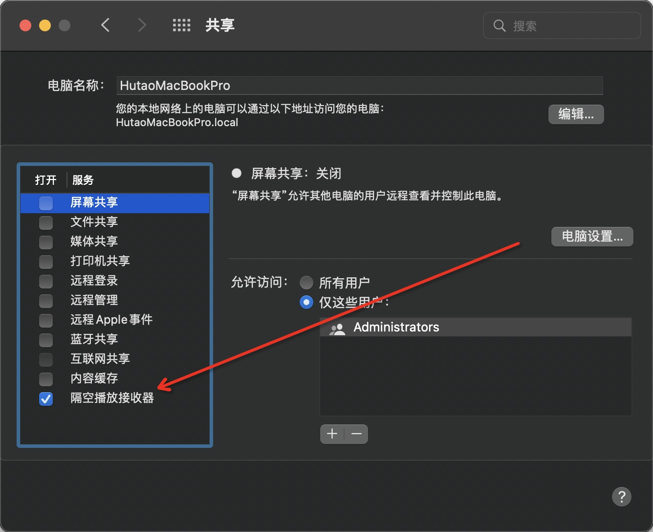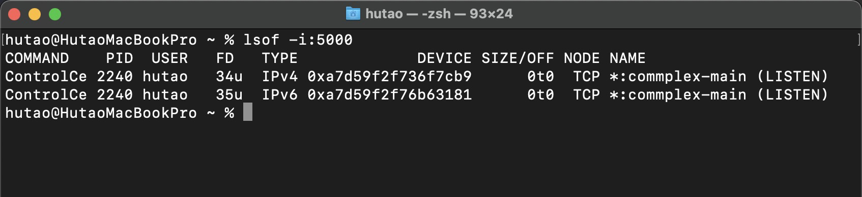 5000端口被锁定5000端口被锁定 发表于 2025/06/10 更新于 2026/03/10 作者 独行的风 1 分钟阅读5000端口被锁定试图杀死它们以解锁端口,但它不会起作用,因为一旦我运行kill(或sudo kill)命令,具有新PID的进程将再次锁定我的5000端口。解决方案:关闭AirPlay Receiver(在端口5000上侦听)修复了我的问题:转到系统首选项–>共享–>取消选中AirPlay Receiver(隔空播放接收器) 其他, macbookpro-m1 macbookpro-m1 本文由作者按照 CC BY 4.0 进行授权 分享
