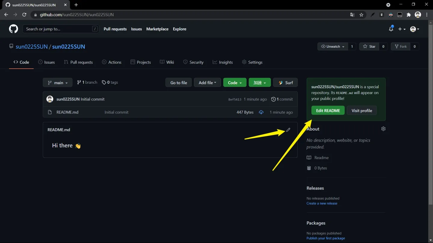 GitHub默认为此文件添加了demo,我们编辑此文件,即可开启自己的DIY之路了!