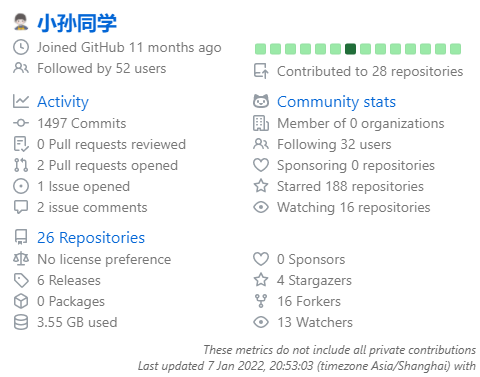 动态生成的活动图,用于显示您过去 31 天的 GitHub 活动。 –> 传送门