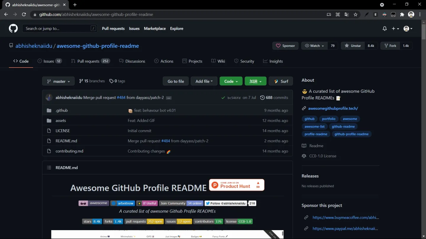 GitHub是一个大的开源代码托管仓库,自述文件(README.md)肯定也是开源的,当我们看到了好的创意,优秀的布局,炫酷的页面的时候,我们直接到大佬的仓库里拉取就好了,记得给大佬star。