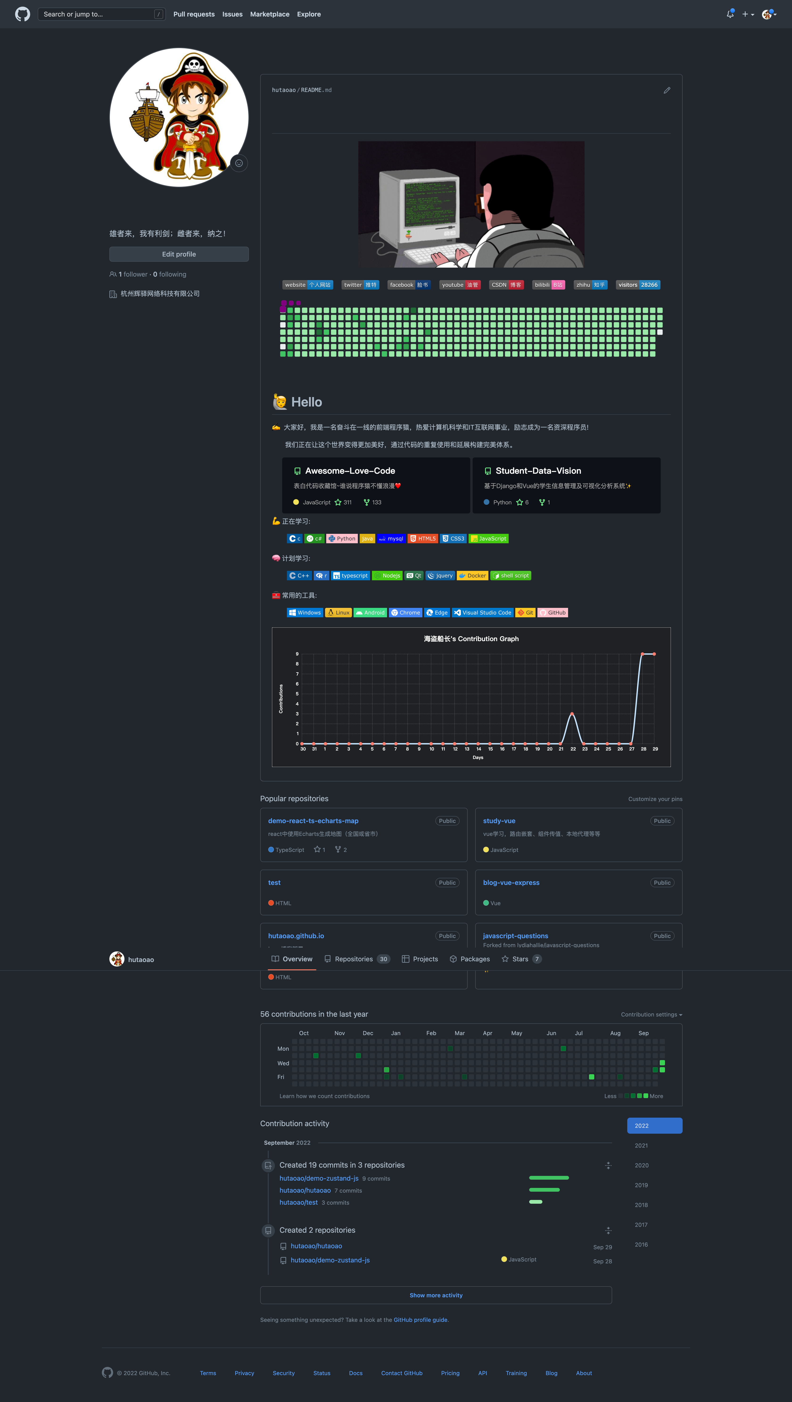 我们在GitHub上见到过更炫酷的主页!比如我的主页,哈哈哈。