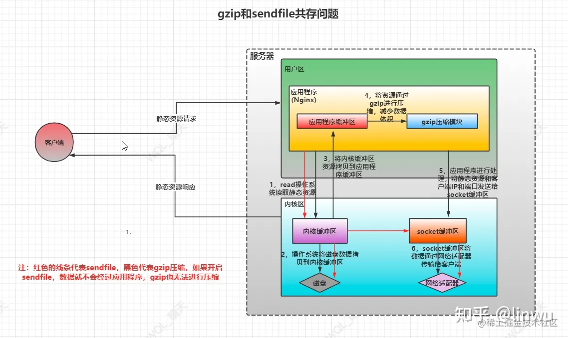 Gzip在应用程序中进行压缩,而sendfile可以直接通过系统的网络设备发送静态资源文件,绕过应用程序的用户进程。为了解决这两者之间的冲突,Nginx提供了ngx_http_gzip_static_module模块的gzip_static指令。