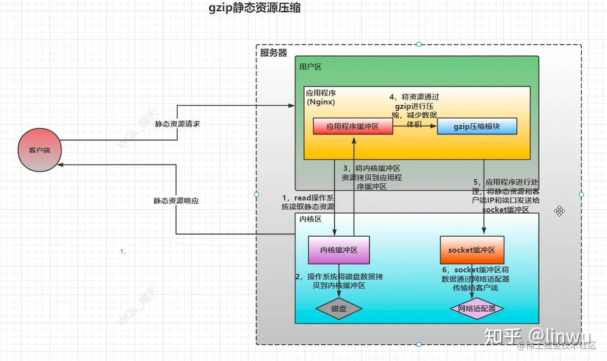 在数据的传输过程中,为了进一步优化,Nginx引入了gzip模块,用于对传输的资源进行压缩,从而减少数据的传输体积,提高传输效率。