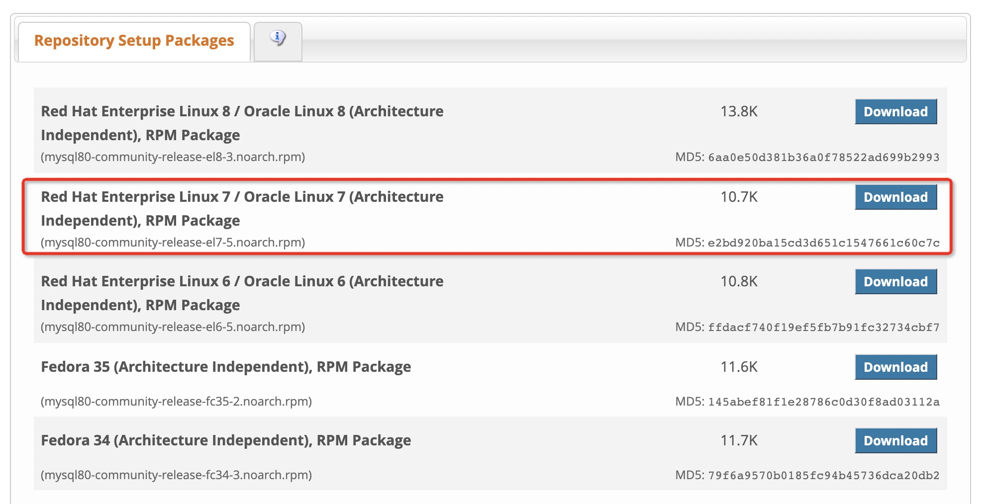 wget https://dev.mysql.com/get/mysql80-community-release-el7-5.noarch.rpm
