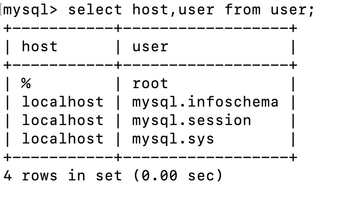 如果没有”%”这个host值,就执行下面这两句:(% 允许所有IP)