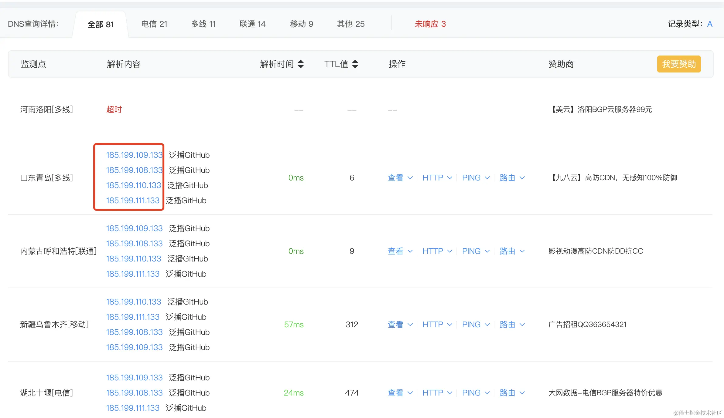 查询一下raw.githubusercontent.com对应的ip地址是啥:“raw.githubusercontent.com”A记录/cname检测结果–Dns查询|dns查询–站长工具