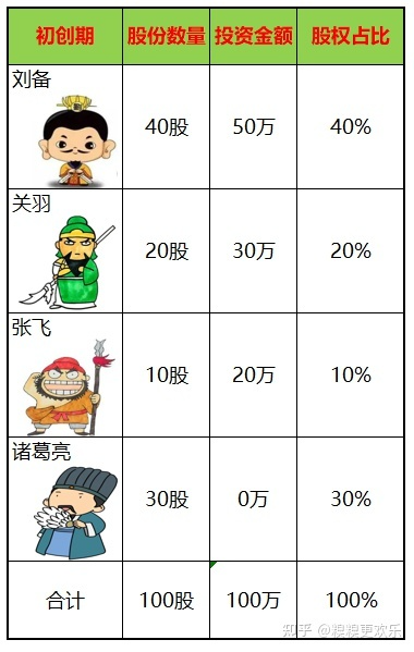 刘备把公司股份设置为100股,