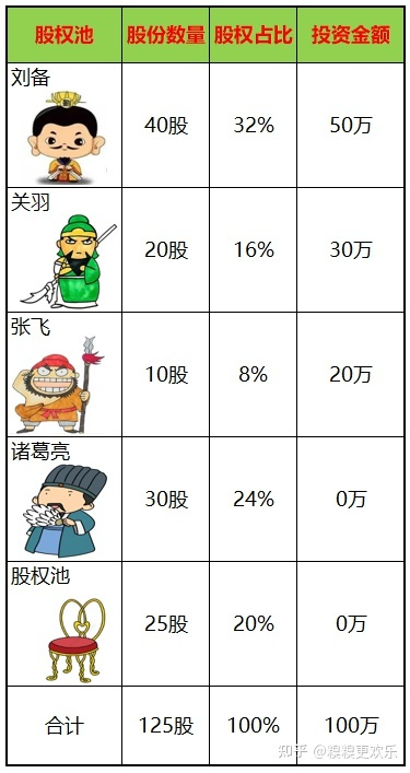 那么刘备四人和股权池的合计125股就只占比80%,