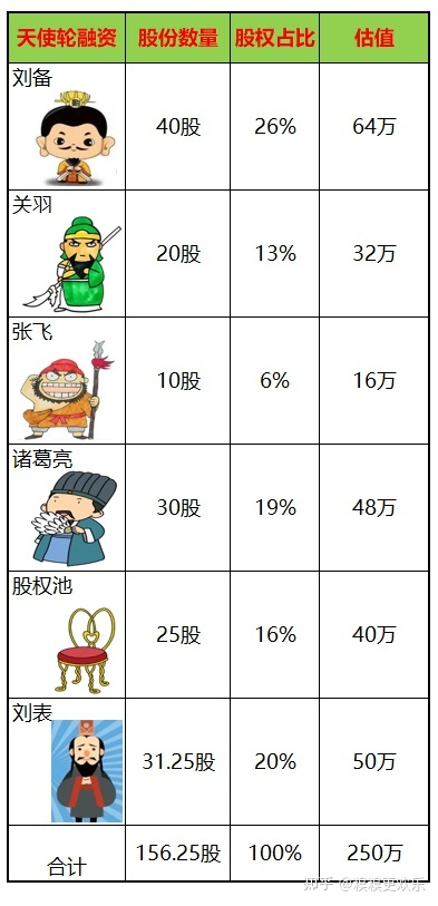 基于250万的估值,刘表出资50万,