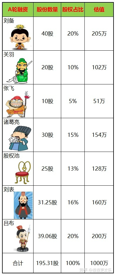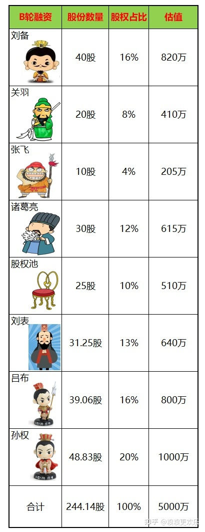 那么刘备七人和股权池的合计244.14股就只占比80%,