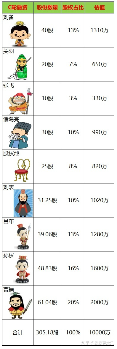 那么刘备八人和股权池的合计305.18股就只占比80%,