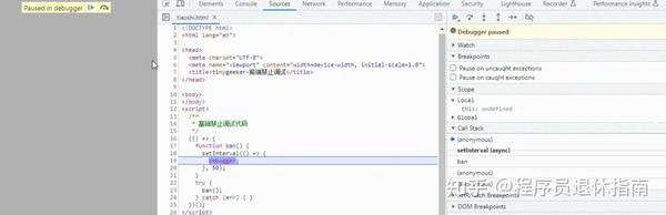 前端页面防止调试的方法主要是通过不断 debugger 来疯狂输出断点,因为 debugger 在控制台被打开的时候就会执行由于程序被 debugger 阻止,所以无法进行断点调试,所以网页的请求也是看不到的。