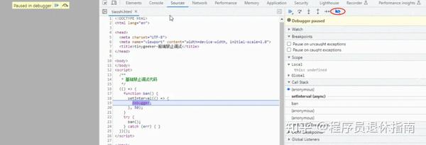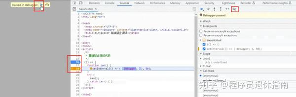 那如何针对上面操作的恶意用户呢? 可以通过将 debugger 改写成 Function(“debugger”)(); 的形式来应对!!Function 构造器生成的 debugger 会在每一次执行时开启一个临时 js 文件,当然使用的时候,为了更加的安全,最好使用加密后的脚本。