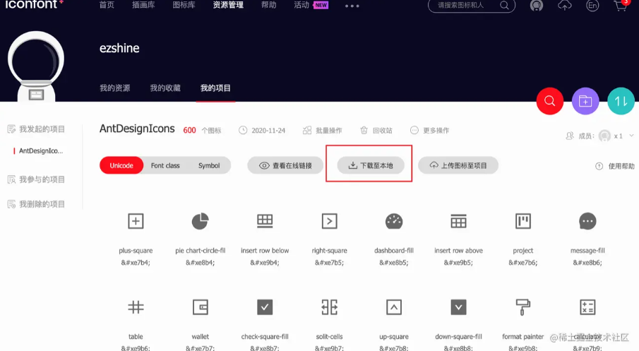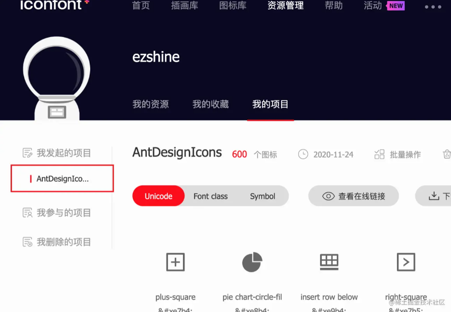 每个图标下面都标记出了这个图标对应的unicode编码,所以我们想用哪个图标,只要copy它的unicode编码到代码里就行了