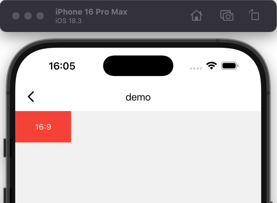 预期效果:\ 一个红色矩形,宽度固定为100,高度自动计算为56.25(因为100/16×9=56.25),保持16:9的宽高比。
