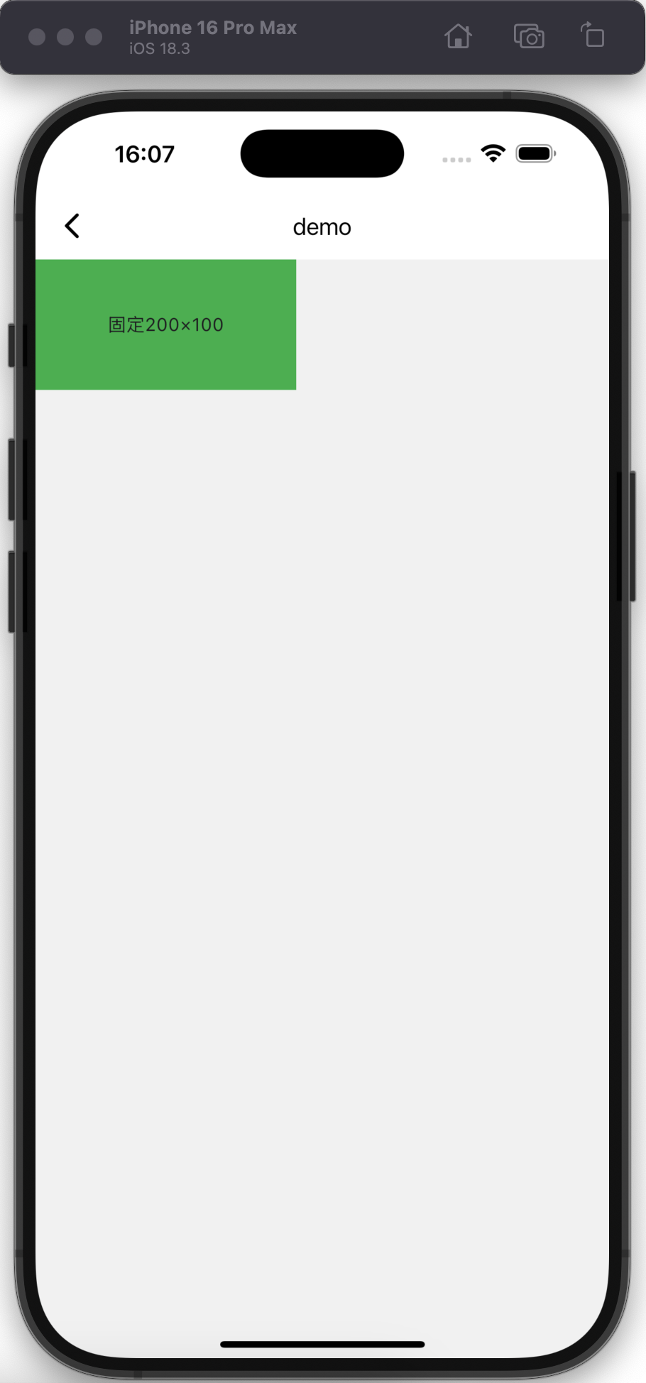 预期效果:\ 一个精确200×100大小的绿色盒子,不会随父容器变化。