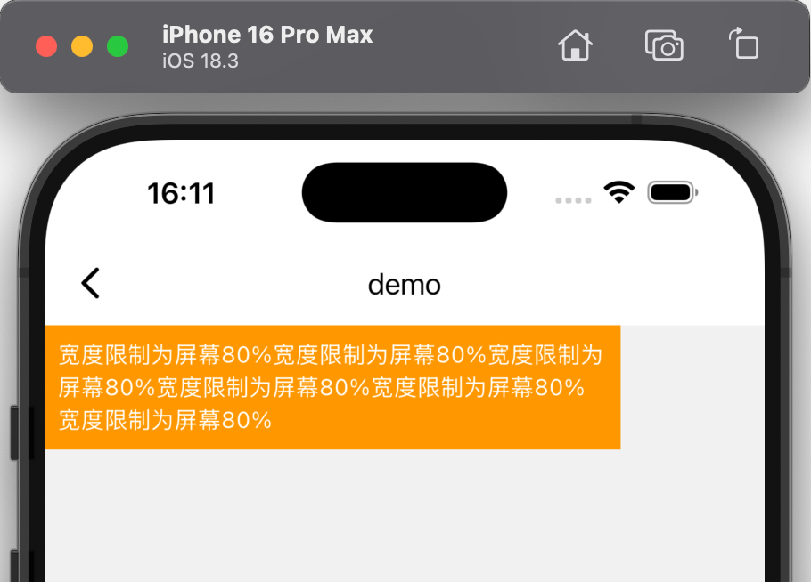预期效果:\ 一个橙色容器,最小宽度100,最大不超过屏幕宽度的80%。