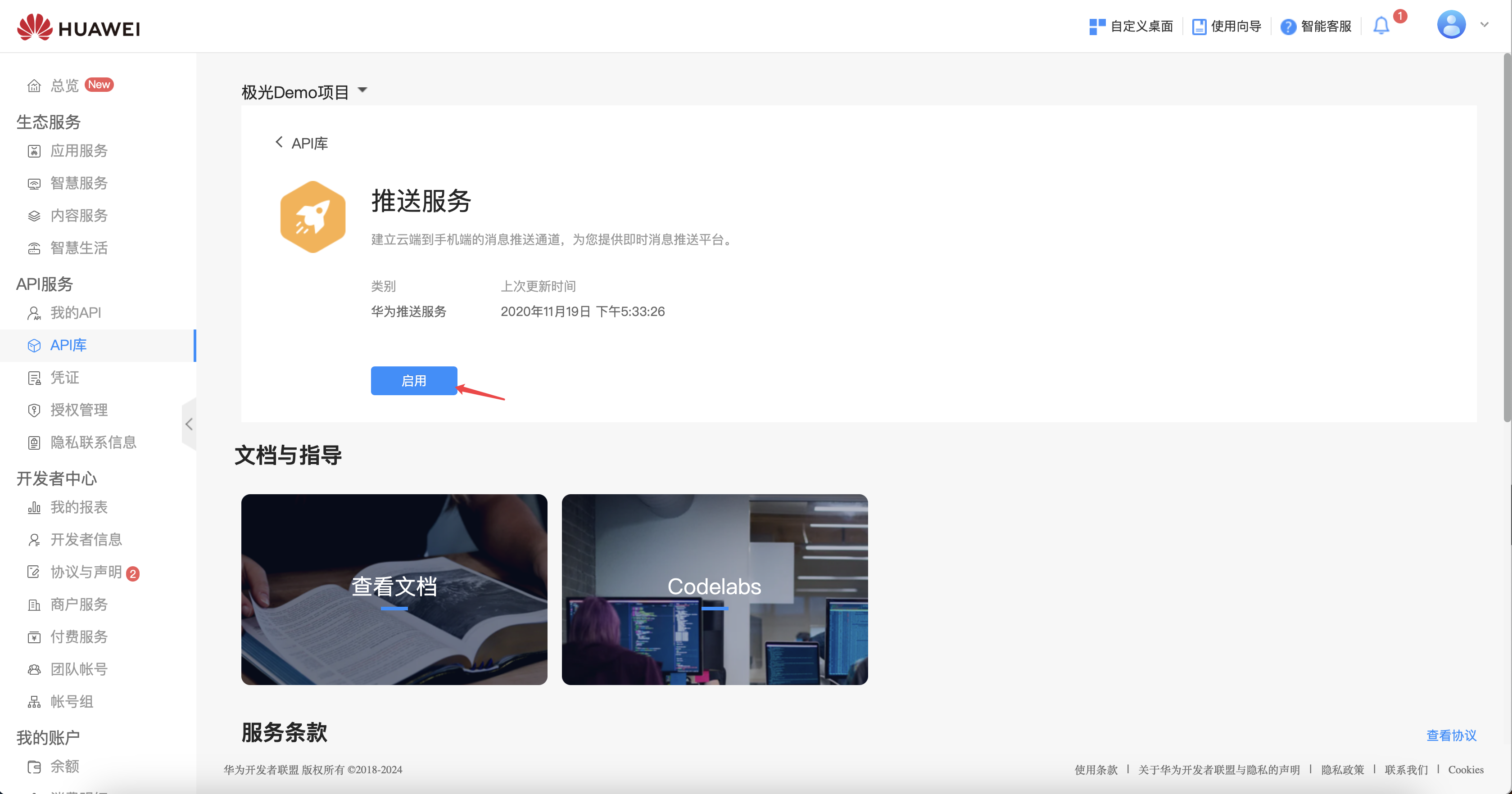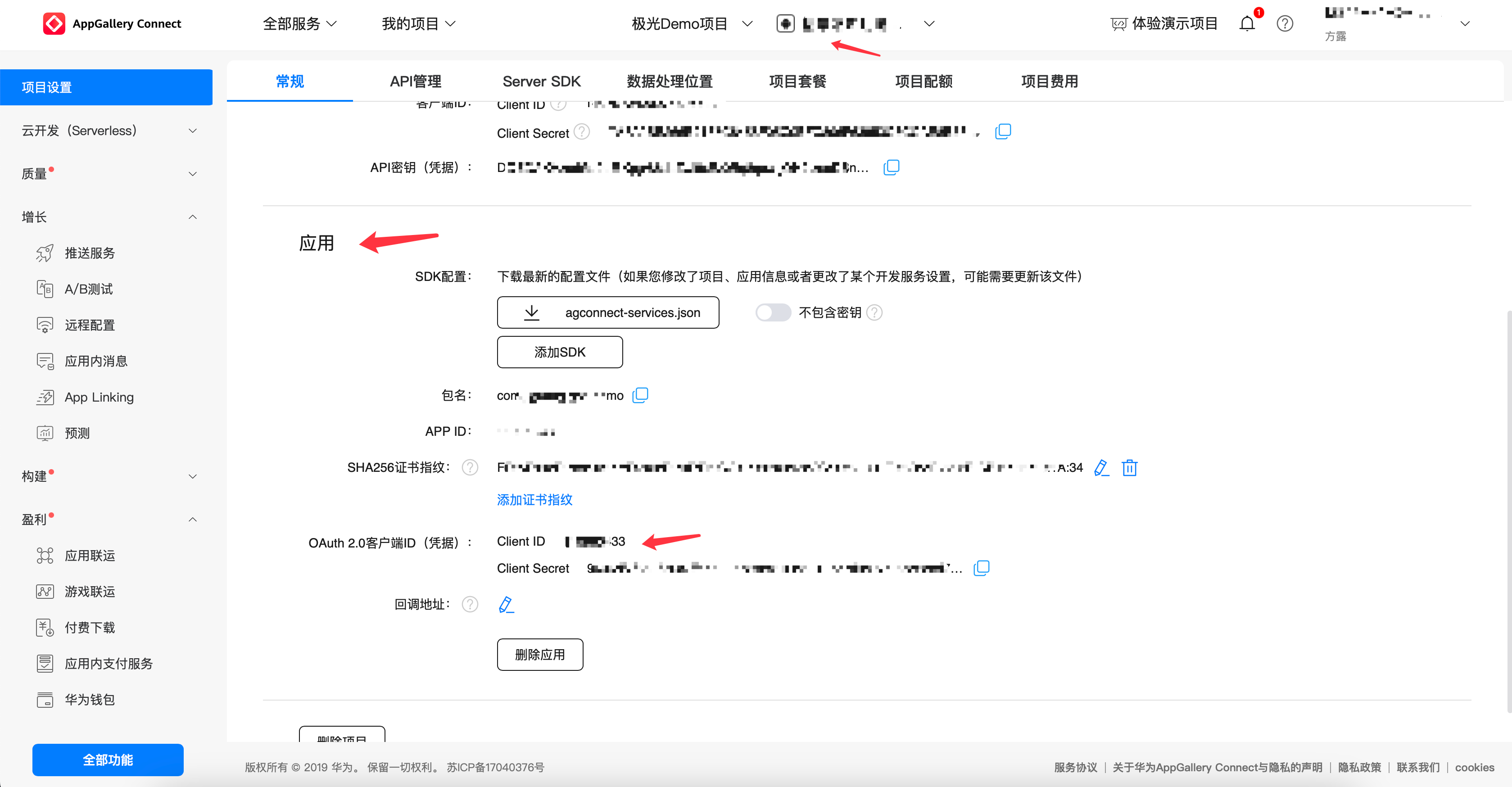 完成鸿蒙厂商通道 SDK 集成后,需要开发者在华为开放平台开通并配置消息回执,方可把鸿蒙的送达统计等数据回调到极光平台,具体操作如下: