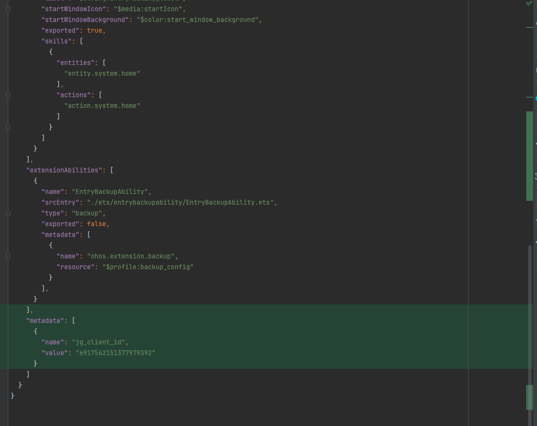 说明: 在本地工程配置 client_id, 在 entry 模块下的 module.json5 文件添加