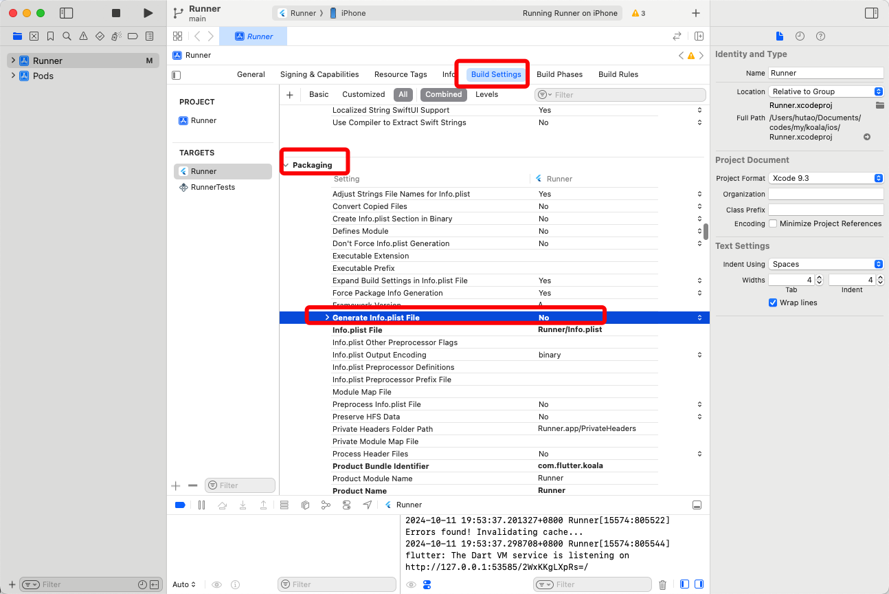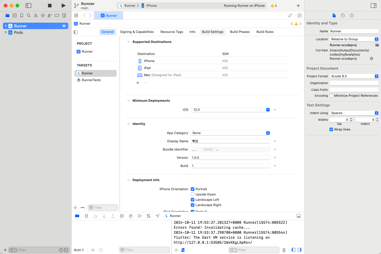 如果你仍然使用旧的Info.plist文件模式,你会发现在Xcode面板(General - Display Name)设置App名字不会生效。如下图,我们把Display Name设置为“考拉”,你会发现App的名字仍然叫“Koala”(后面发现Info.plist中的Bundle display name 为 Koala)。