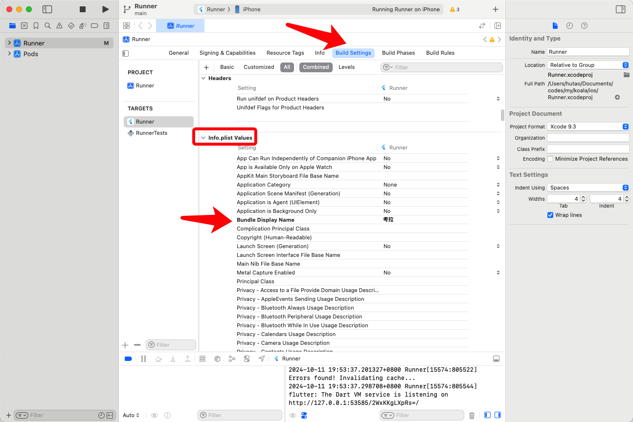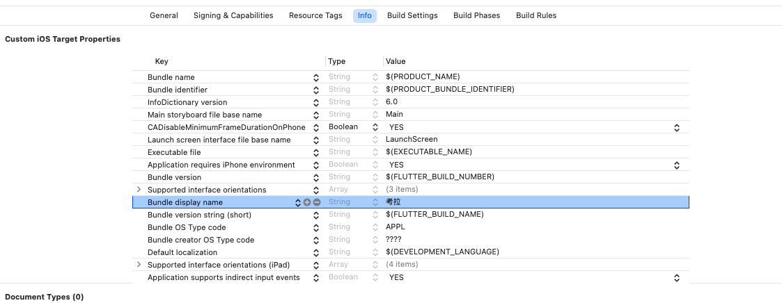 该方案可以让App名字生效,但缺点是Xcode面板和Info.plist中不同步。例如 Info.plist中修改CFBundleDisplayName为“考拉”,App的名字生效了变成了“考拉”,但是Xcode面板中却是旧的值“ABCDE”。