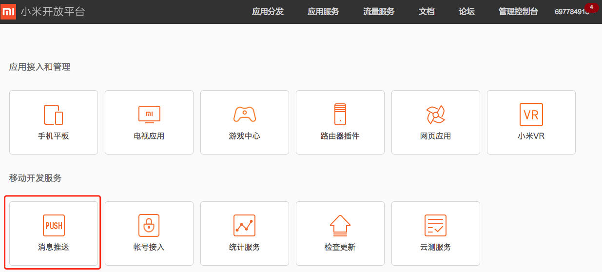3.2 进入推送服务界面