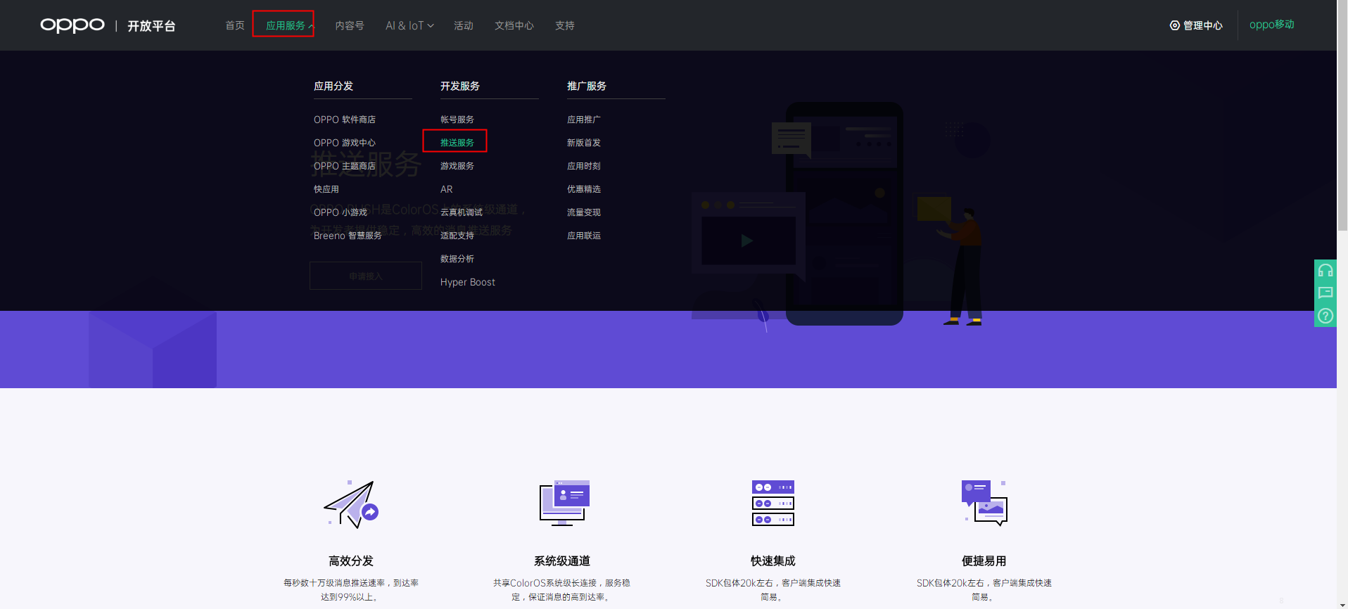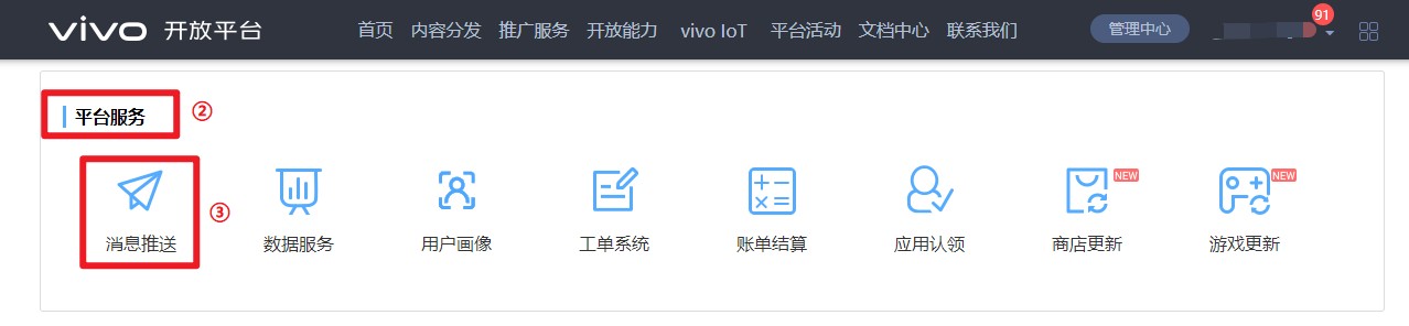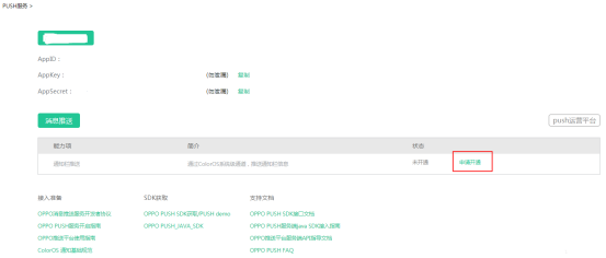 3.1.1 登录OPPO开放平台,依次选择“应用服务”–“开发服务”–“推送服务”