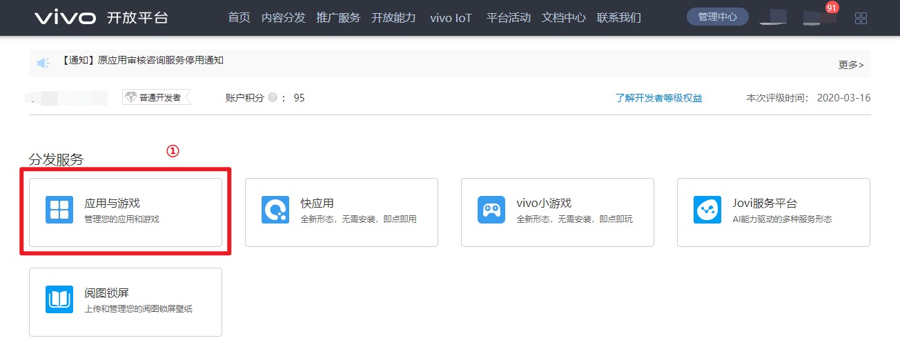 1. 注册vivo开发者账号