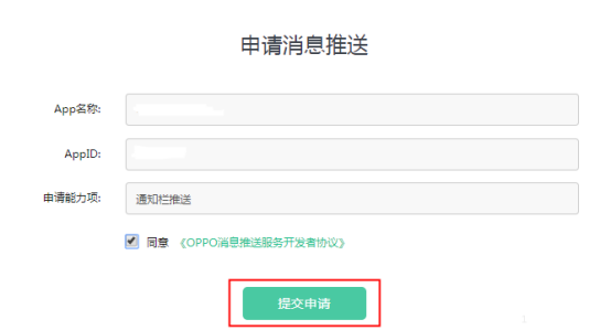 若先进入此步骤,略过了创建应用环节,可点击“开放平台-创建应用”跳转到相应界面,详细流程请见:《应用提交流程》;若已有应用点击提交申请后,推送服务将同步开放平台上架应用结果,请关注开放平台应用的上架状态,开发者可在申请页面查看审核结果。