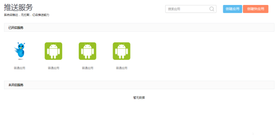 1)已开启服务:已申请push权限并通过的应用2)未开启服务:可申请push权限的应用