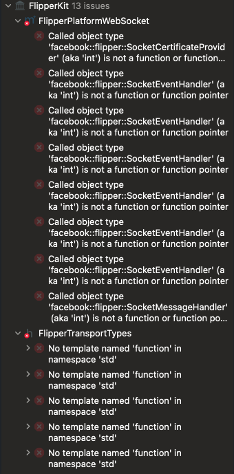 Called object type 'facebook::flipper::SocketCertificateProvider' (aka 'int') is not a function or function pointer