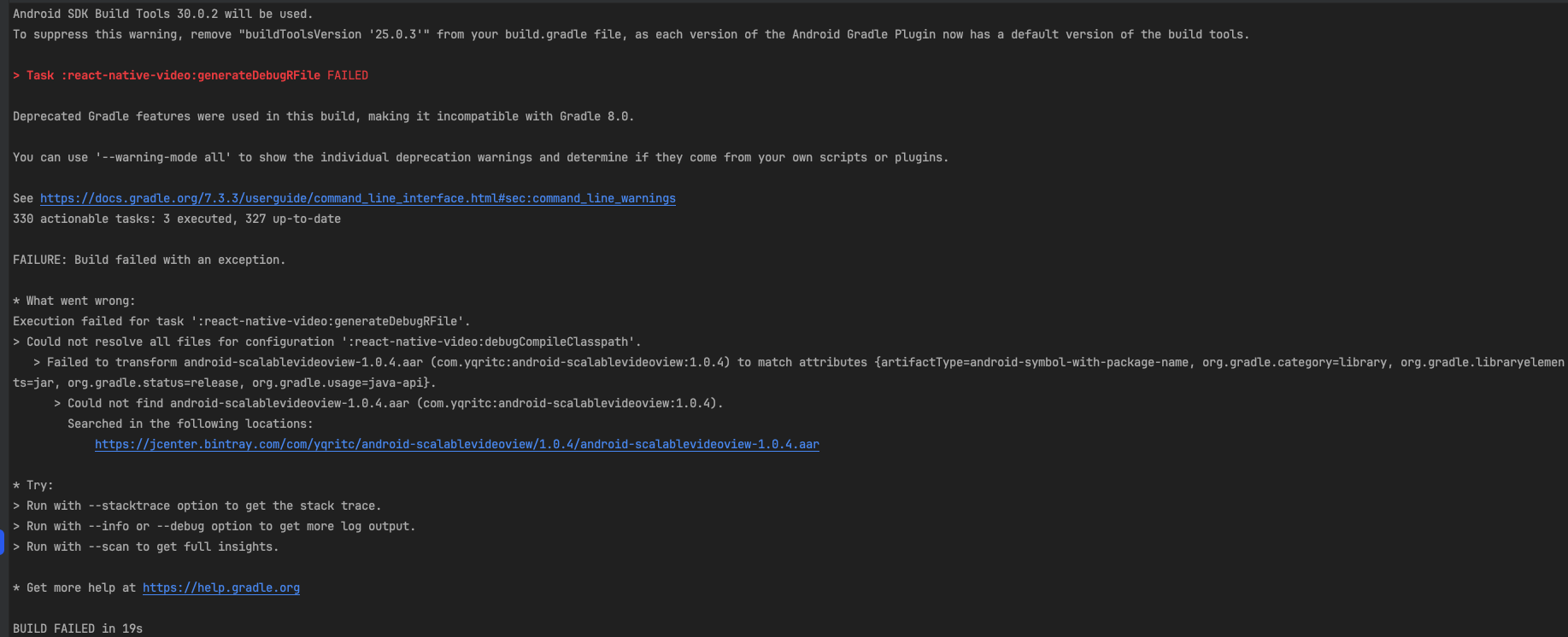 Task :react-native-video:generateDebugRFile FAILED