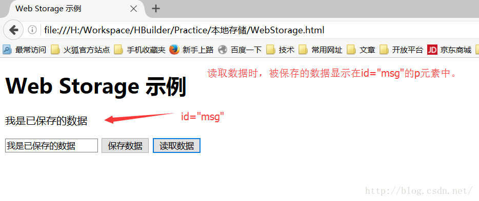 <input type="button" value="读取数据" onclick="loadStorage('msg');" />
