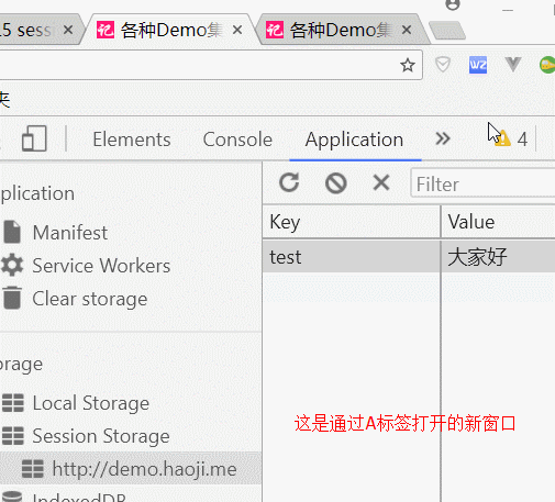 今天又碰到有关sessionStorage的一个问题,发现之前理解的还是错误的,比如当我通过A标签打开新的窗口时,在新窗口删除同样的数据,旧窗口的却还在。
