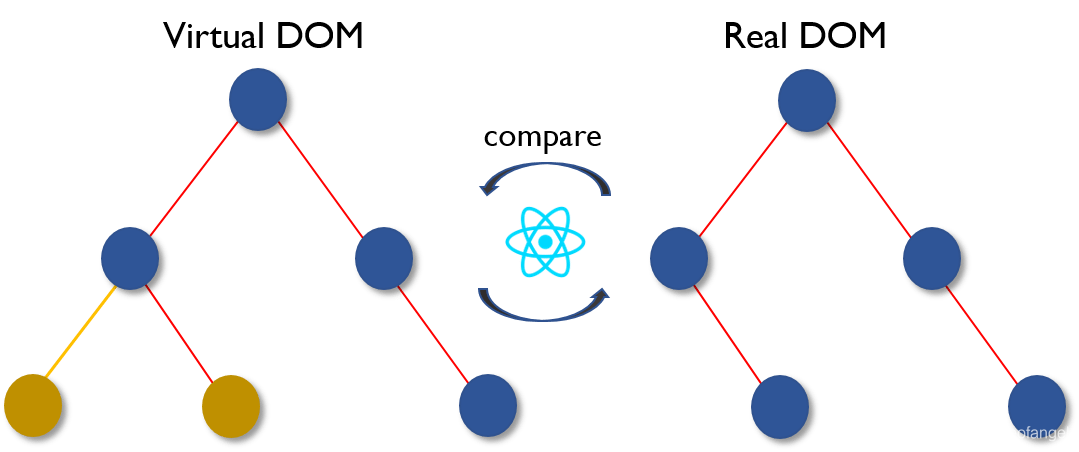 - 完成计算后,将只用实际更改的内容更新 real DOM。