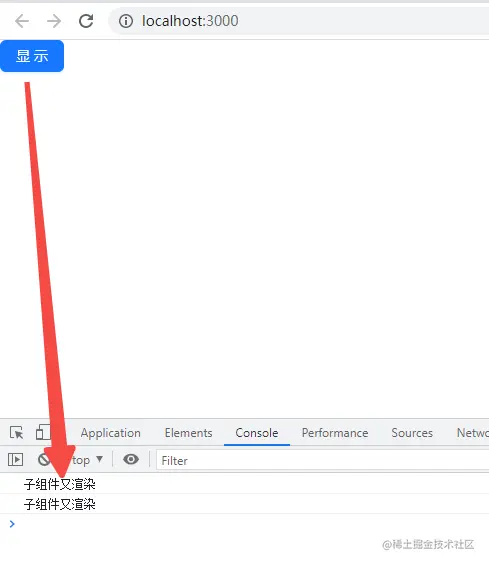 在上面的例子中,父组件中的两个状态 number、flag 都和 Child 组件没有关系,当我点击按钮时,flag 发生改变,此时父组件重新渲染,按钮文案变为显示,控制台却打印出 “子组件又渲染” 的信息,说明子组件也跟着重新渲染了。而这肯定是不合理的,我们不希望子组件做无关的刷新,此时我们可以给子组件加上 React.memo